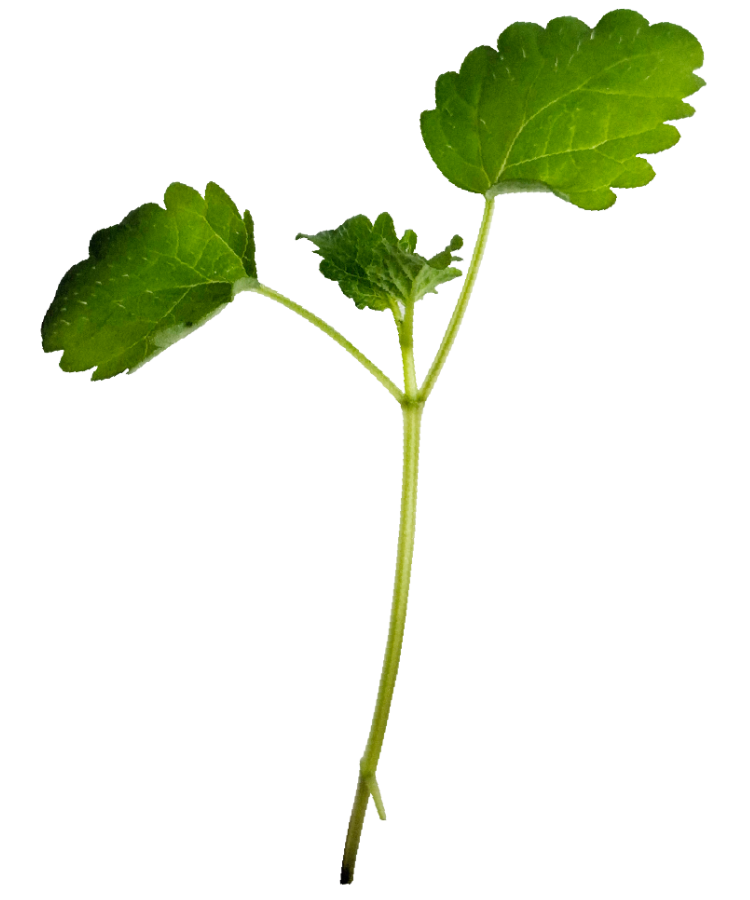 4–6 cm with round green leaves and brings warm slightly bitter notes.