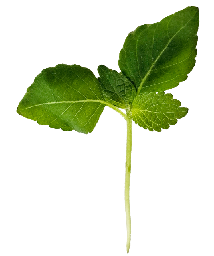 4–6 cm with green or purple leaves and gives an aromatic mint-citrus flavor.